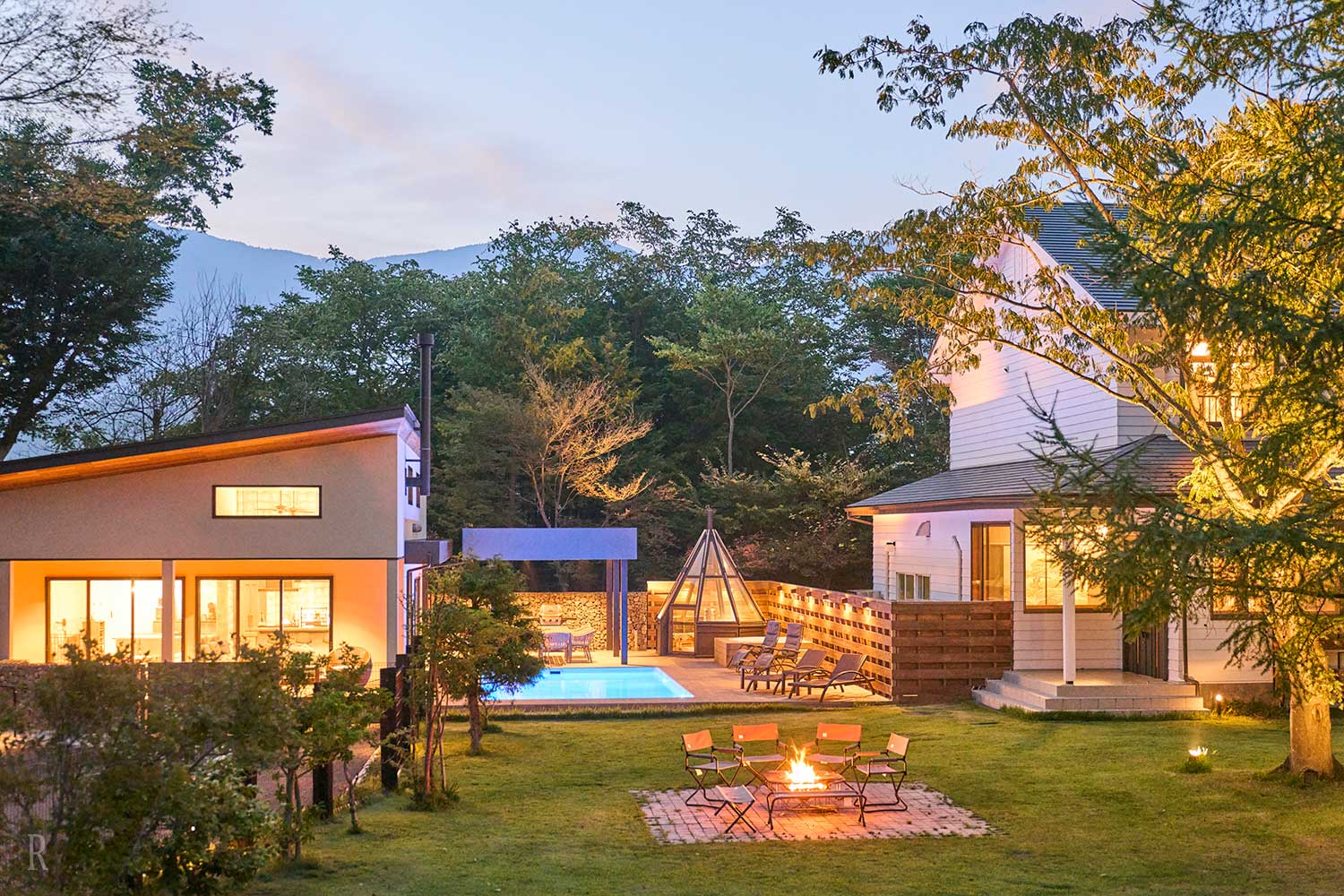 夜には満天の星空の下、専用のファイヤーピットで薪の爆ぜる音に耳を傾けて非日常空間を。